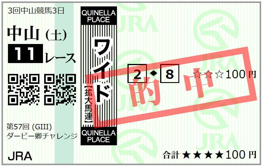 | 馬連 | 2-7 | 910円 | 3番人気 |